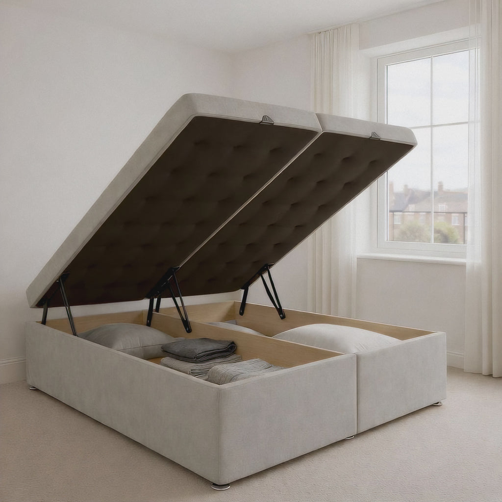 Smart Storage Options: Our solid divan ottoman adds spacious storage, operated by x4 powerful gas pistons. Maximum mattress weight is 50 KG (whilst in the open position).