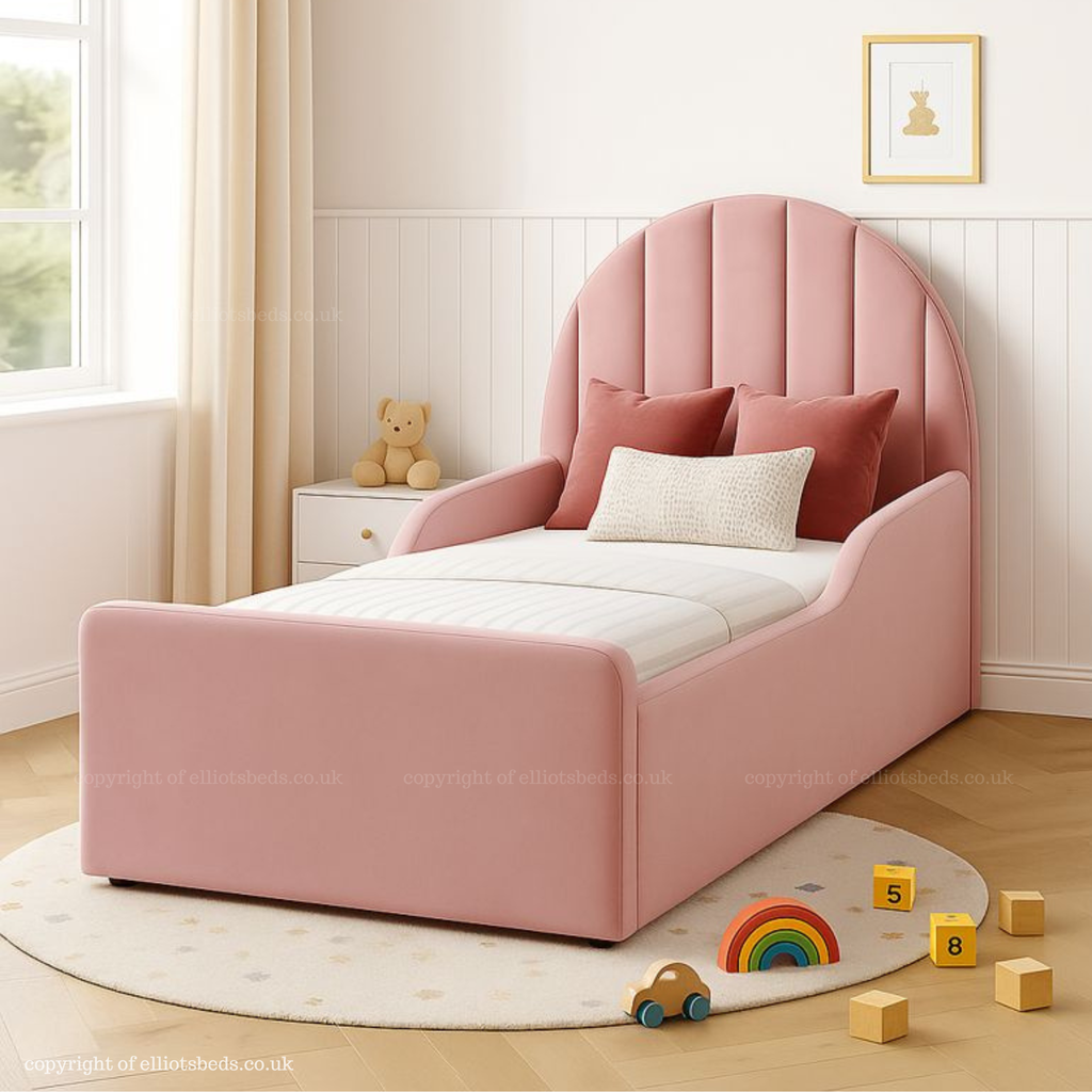 Brand new to 2026 our Casper Kids bed, an exquisite blend of comfort and craftsmanship that redefines your bedroom experience. Handcrafted in Yorkshire, this stunning upholstered bed features a thick, solid timber frame, ensuring durability while adding a touch of elegance to your space.